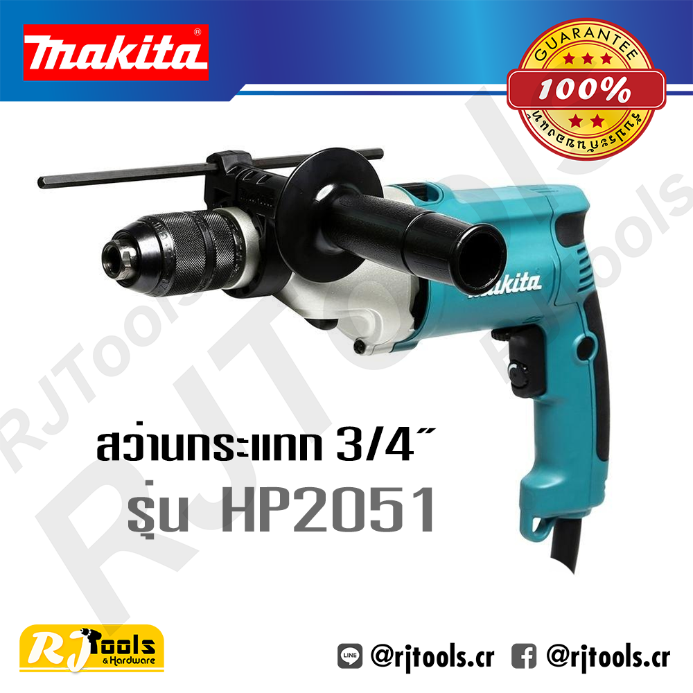 สว่านกระแทก 20 mm. (3/4’) Makita รุ่น HP2051 - กำลังไฟฟ้าที่ใช้ 720W - สมรรถนะ คอนกรีต : 20 mm. (3/4”) เหล็ก สูง : 8 mm. (5/16”) / ต่ำ : 13 mm. (1/2”) ไม้ สูง : 25 mm. (1”) / ต่ำ : 40 nm. (1-9/16”) - อัตราเจาะกระแทกต่อนาที(ipm) สูง : 0-58,000 / ต่ำ : 0-24,000 - ความเร็วรอบตัวเปล่า(rpm) สูง : 0-2,900 / ต่ำ : 0-1,200 - คุณสมบัติ ฉนวนสองชั้น สวิทซ์ปรับความเร็ว ปรับซ้าย-ขวา ปรับ 2 สปีด ระบบป้องกันแรงบิดเกินกำลัง ระบบป้องกันการสั่นสะเทือน เปลี่ยนดอกเจาะโดยไม่ต้องใช้จำปา - ความยาวรวม 360 mm. (14-1/8”) - อุปกรณ์ภายในกล่อง สว่านกระแทก 20 mm. (3/4’) Makita รุ่น HP2051 , มือจับ , สเกลตั้งความลึก , คู่มือการใช้งาน , ใบรับประกันสินค้า - น้ำหนักสุทธิ 2.5 กก. สนใจสอบถามเพิ่มเติม LINE ID : @RJTools.cr ![]() ![]() |